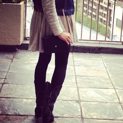 (Robe: Mesdemoiselles Paris - Bottes: OldGringo - Sac à main: Michael Kors - Veste en jean : Pepe Jeans)